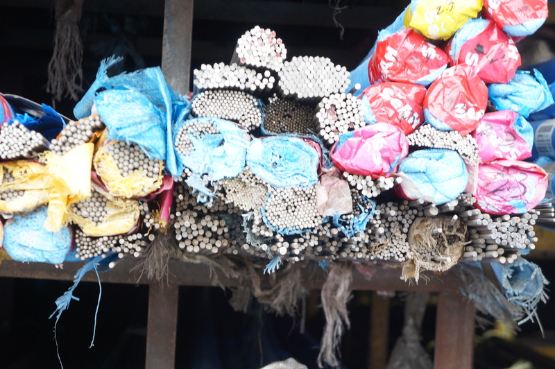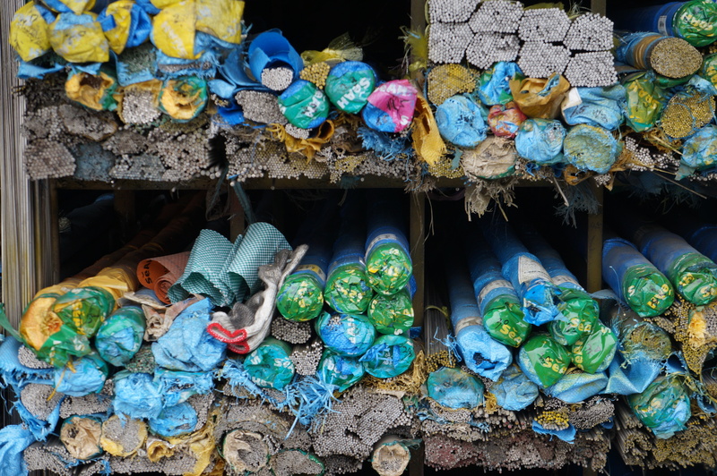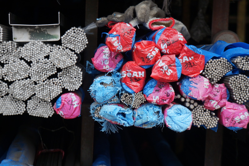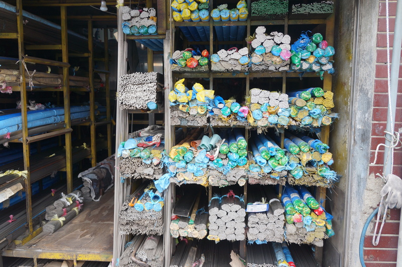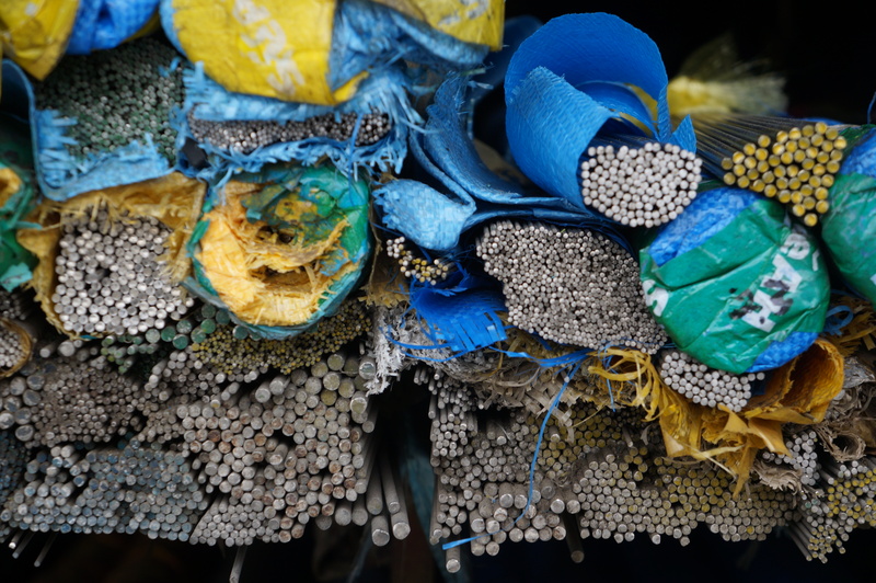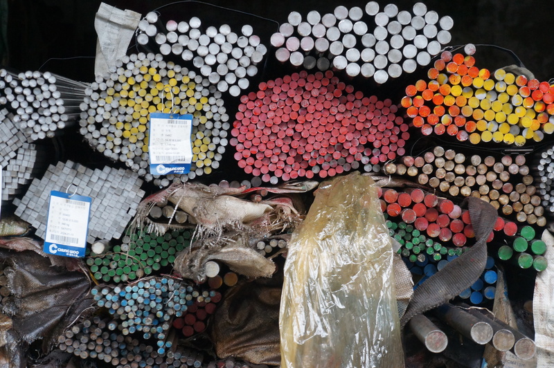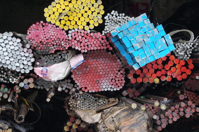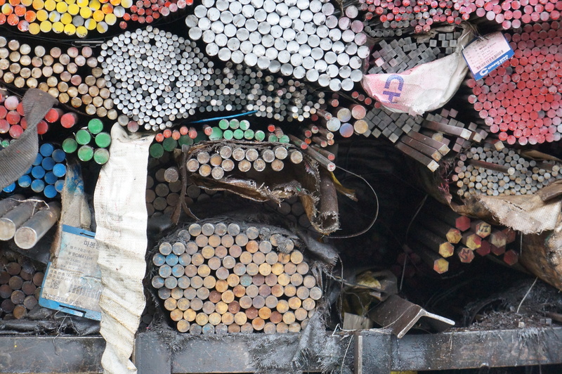 Alle Fotos in dem Bereich Strukturen sind bei meinem letzten Besuch in Südkorea aufgenommen worden. Zum einen in Mullae, einem Stadtteil von Seoul in einem Industriekomplex, der fast ausschließlich aus kleineren Handwerksbetrieben besteht. Der andere Teil ist aufgenommen worden in Gwangju, wo die Schwiegermutter meines Sohnes wohnt. Die Fotos stammen aus dem Ortsteil Sajik, wo diese Arbeiten stehen. Es handelt sich dabei um eine Kunstart, in der aus Stahlplatten kleine Plättchen teilausgestanzt und verbogen werden. Daraus ergibt sich eine mosaikartige Struktur. Klar, meine Welt.